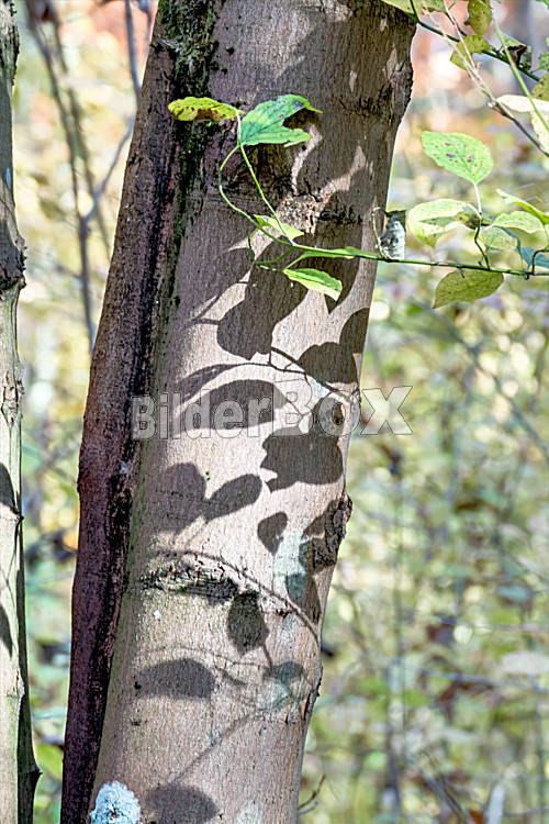 Beschreibung Ein Blatt im Herbst auf einem Baum