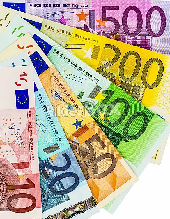 Beschreibung many different euro bills. symbolic photo for wealth and investment.