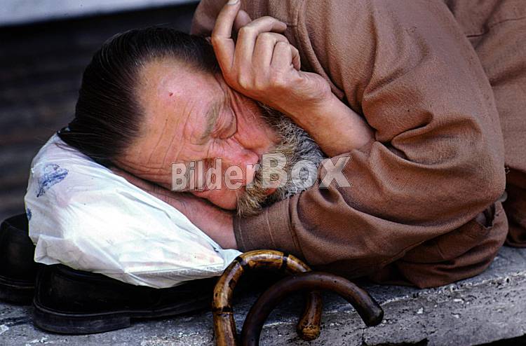 Beschreibung Obdachloser, schlafend - [(c) www.BilderBox.com; Erwin Wodicka, A-4062 Breitbrunn. Tel.: +43 676 5103 678. Verwendung nur nach den AGBs: www.bilderbox.com/1agb.html. Bild honorarpflichtig! Konto...